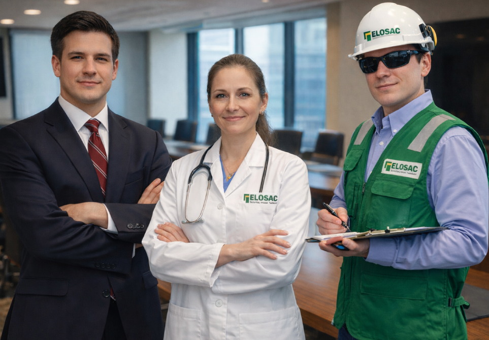 ELOSAC; ofrece a sus clientes una consultoría legal en materia de Seguridad y Salud en el Trabajo y materia Socio-Laboral, a través de un Pool de abogados, y apoyados en ingenieros y médicos ocupacionales como equipo multidisciplinario que trabaja de manera conjunta e interactiva en el cumplimiento del marco legal.